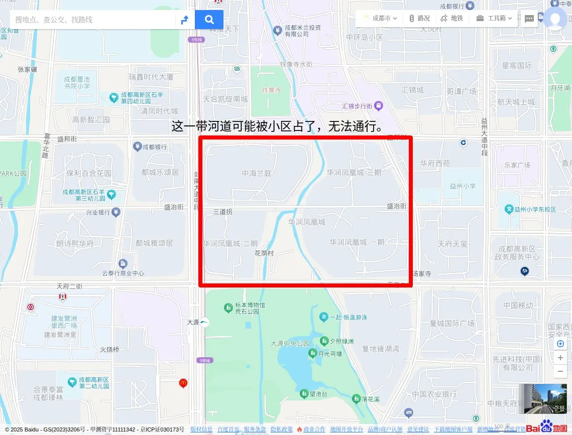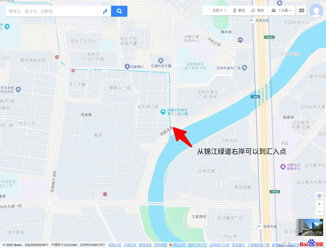 在汇入锦江前,肖家河的右岸被小区住宅区占了,无法进入,左岸看着有条小路,但估计后面的市政道路变化,也废弃了。这一段一直到天府五街,没有找到沿河的路,也许是被小区占了,或者就是直接在地下了。