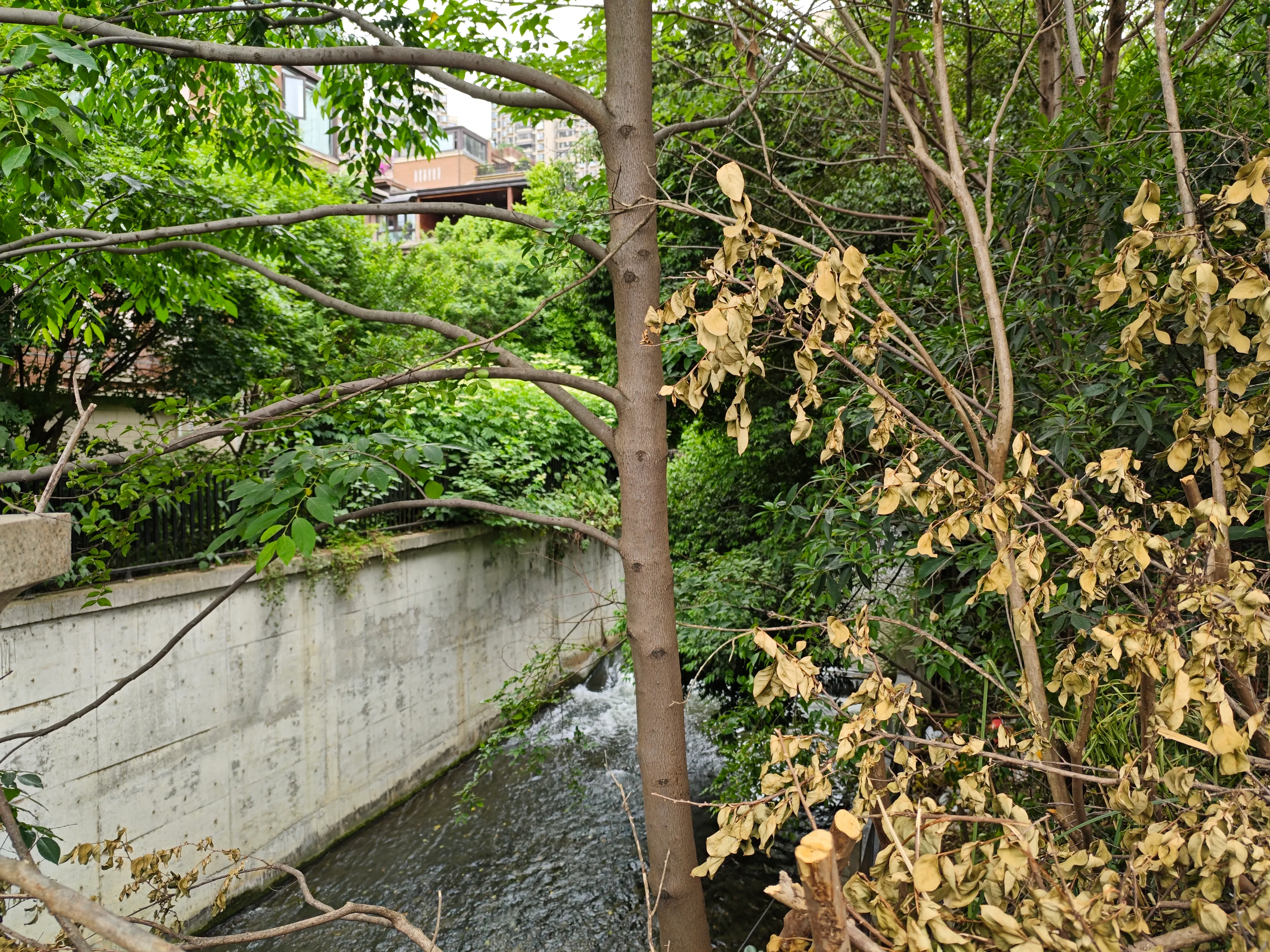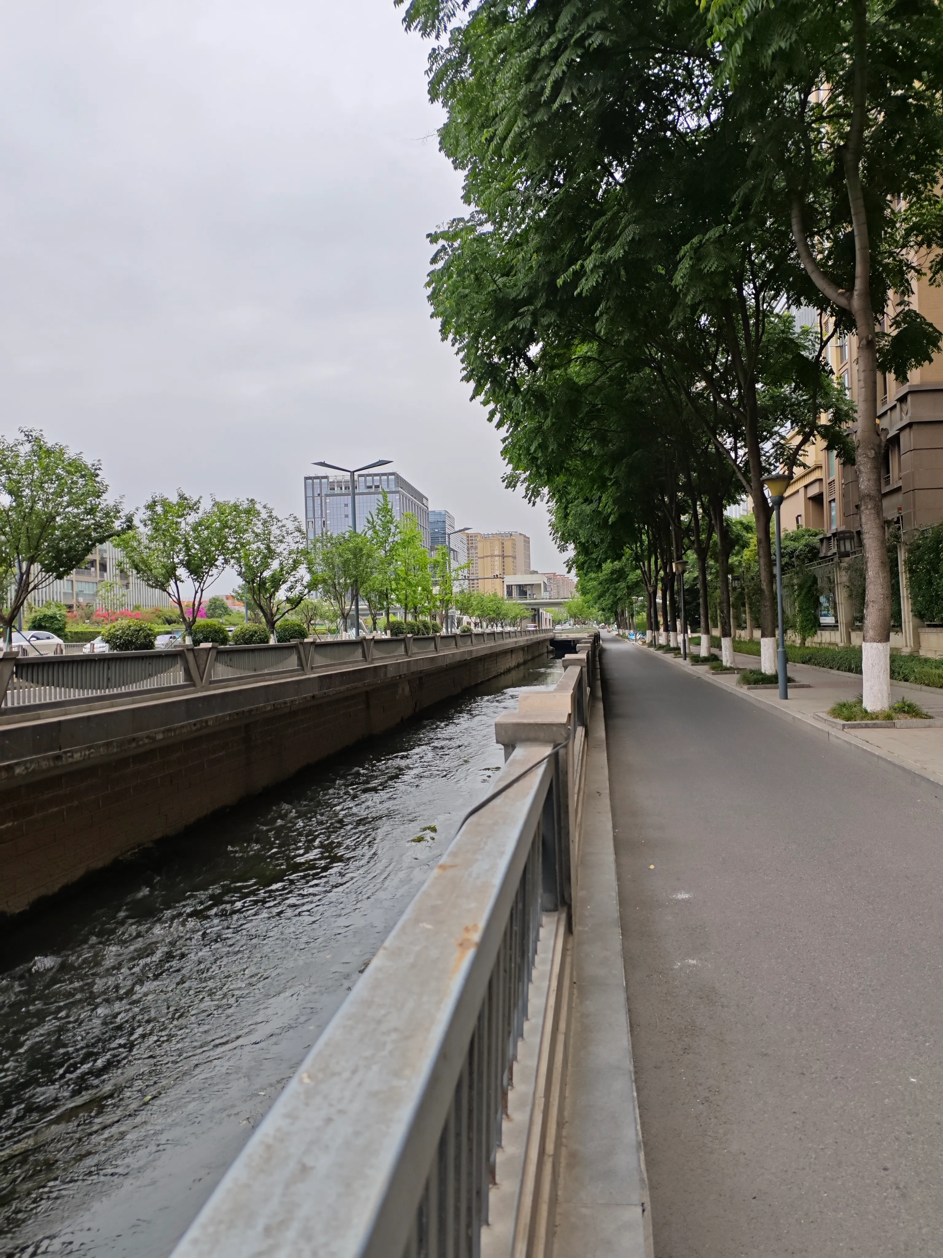 剑南大道边的肖家河完全就是一条小水沟了。只有左岸可以沿河骑行,右岸是机动车道。
