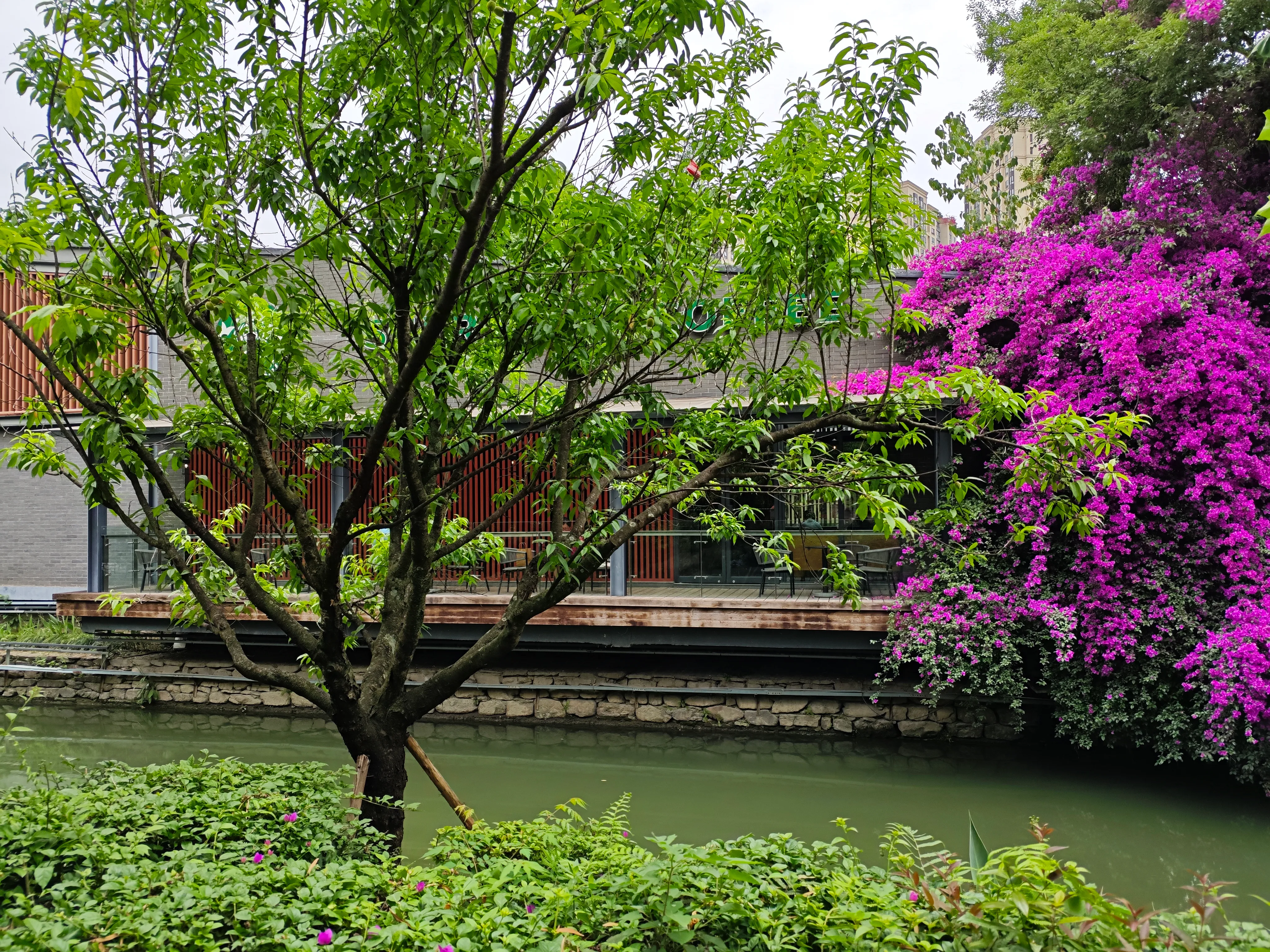 还有在左岸的星巴克。三角梅盛开中。