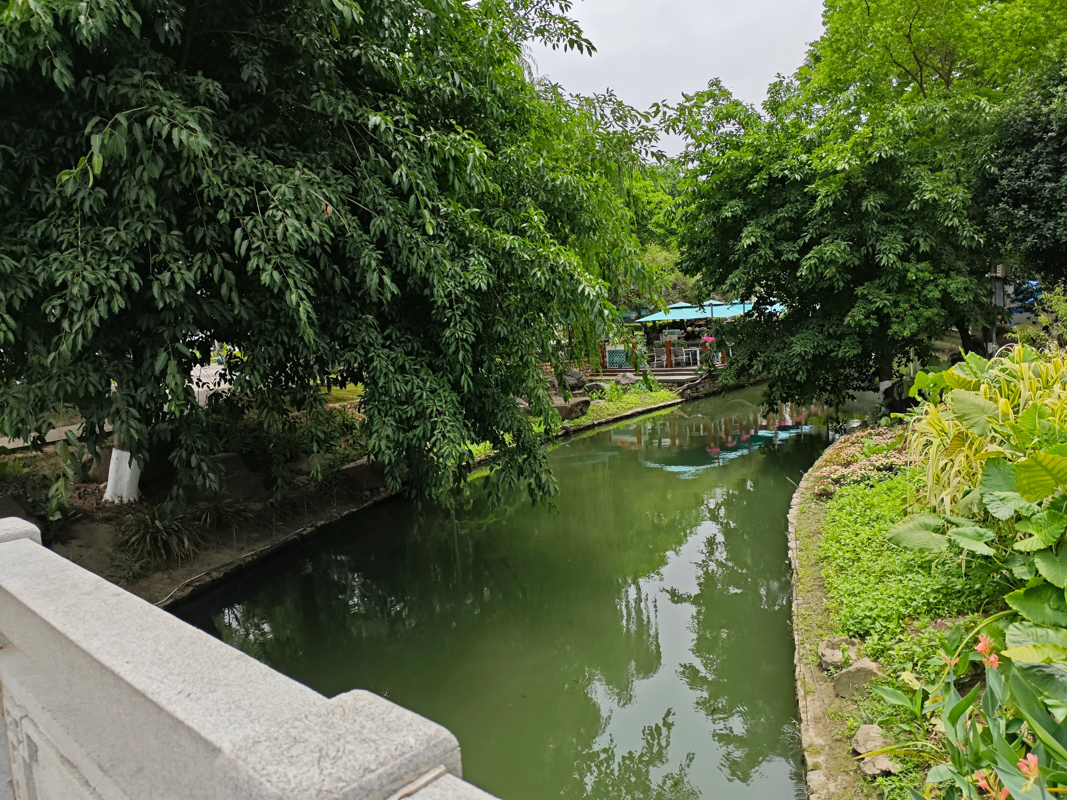 水街这一带河岸打理得很漂亮。只是这河水几乎没有流动。