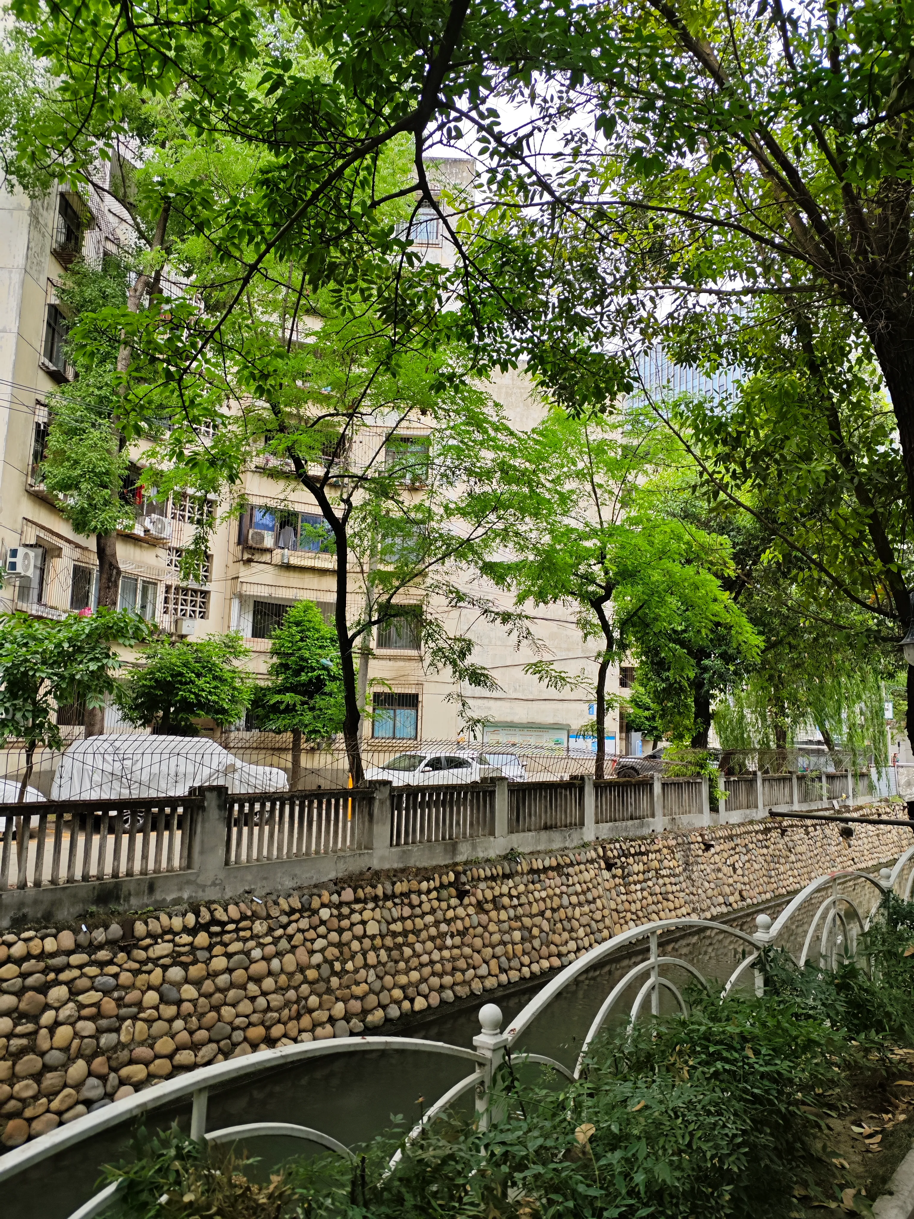 著名的西川中学也在肖家河边。这里离河口已经不远了。这一带的格局大致都是右岸被各种单位,小区占了,不能行人,或者道路不通。左岸是肖家河沿街和广福桥北路。
