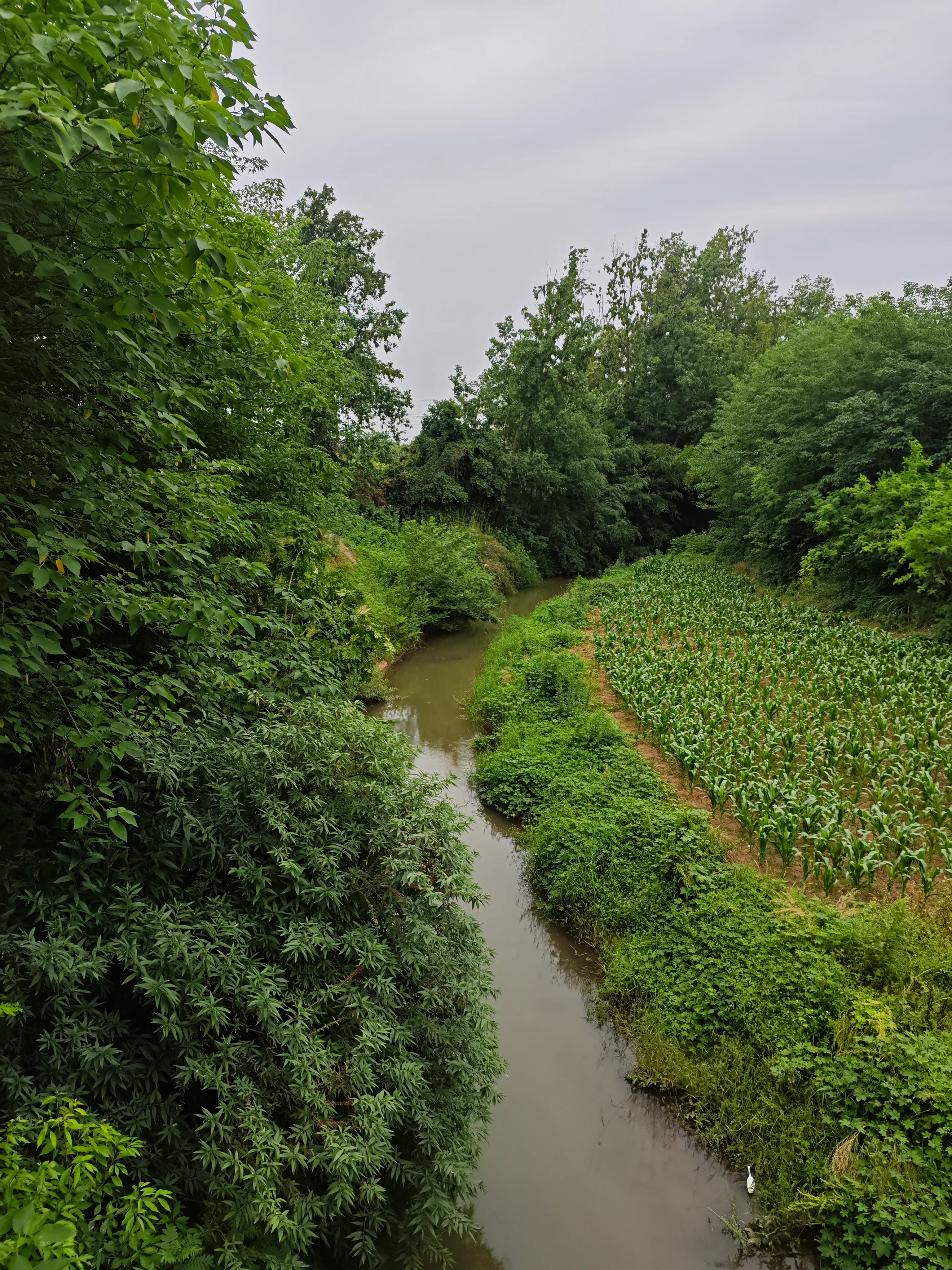这是首次经过鹿溪河时看到的河面。感觉人可以跳过去。边上有人种了玉米,可能是觉得这河水是涨不起来了。