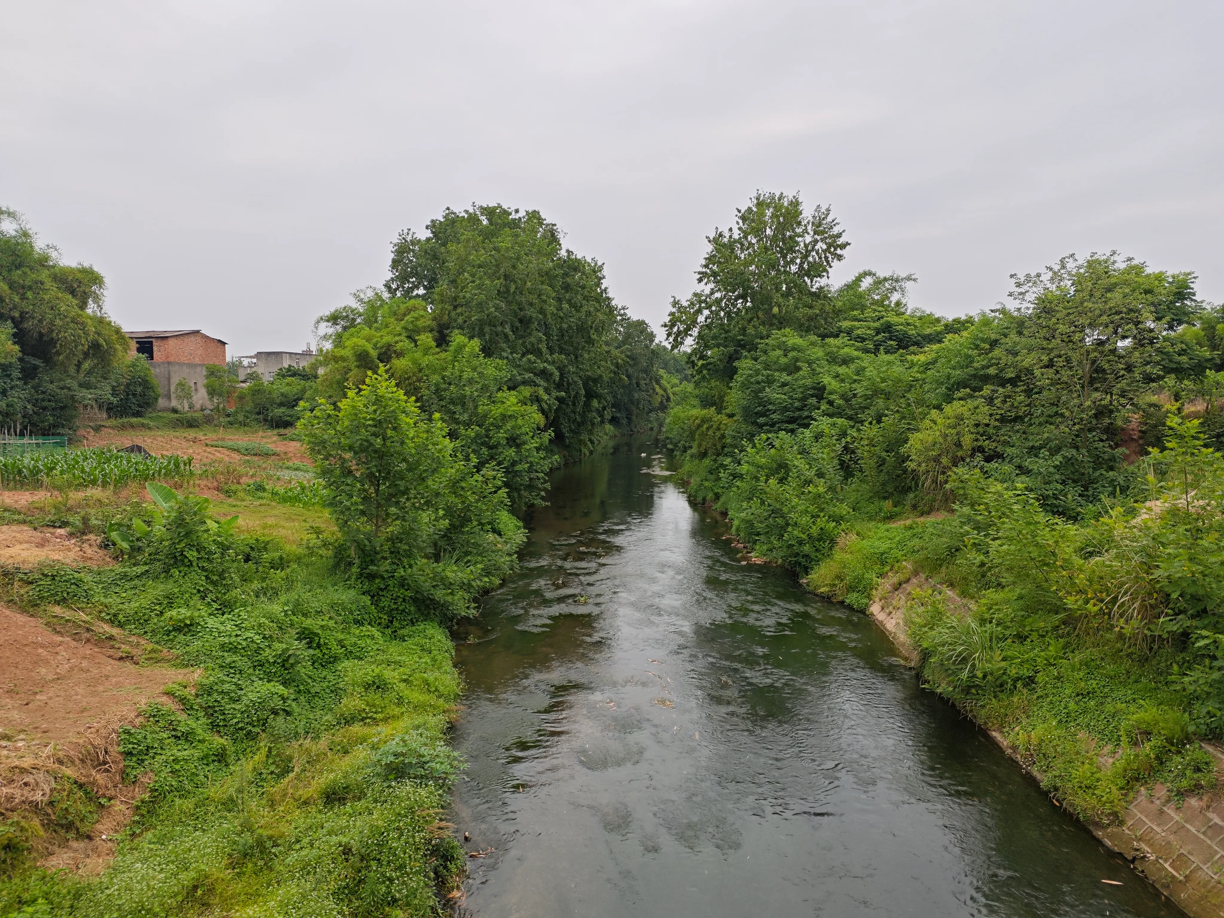 向下游看去,左边的闸门应该是通往兴隆湖的,右边是鹿溪河继续向黄龙溪流去。